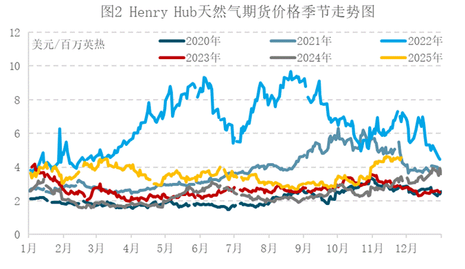 需求方面,11月气温从高于正常水平逐渐向低于平均气温转变,上旬,美国大部分地区经历相对平稳的天气,冷气团主要集中在中西部北部、五大湖及东北部的偏北地区,中部及南部地区的持续温暖天气抑制了取暖需求,中旬开始,北极冷锋南下,气温逐渐降至季节性平均水平以下,随着冷空气在中西部、东北部和东部内陆地区占据主导地位,供暖需求相应增加。出口方面来看,根据Kpler船期数据统计,11月美国累计出口LNG达1073.6万吨,较10月增长8.91%,同比增幅则达到41%,月度出口量再次刷新历史。综合来看,11月价格变动主要受天气驱动下的季节性取暖需求坚挺,以及持续旺盛的出口带动。虽然在上旬气温较为温和,但中下旬对降温的预测为价格上涨带来心态方面支撑,除此之外,库存水平较去年同期下降也带来看涨影响,尽管天然气产量增势延续,但该利空因素难抵取暖需求、库存下降及强劲的LNG出口等因素带来的利多支撑,月均价实现较宽幅的同环比上涨。