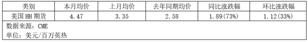 11月美国亨利港(Henry Hub,以下简称HH)天然气期货整体呈现坚挺上涨走势,月均价同环比上涨。